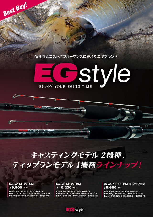 実用性とコストパフォーマンスに優れたエギブランド、EGstyle(イージースタイル)!エギングロッド、ティップランロッド、リール、エギ、エギケースなど上州屋グループ各店にて好評販売中です!