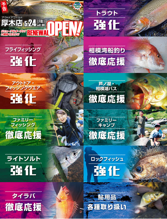 この度、上州屋アウトドアワールド厚木店は2024年5月24日(金)店内品揃えを強化しリニューアルオープンさせて頂くことになりました。