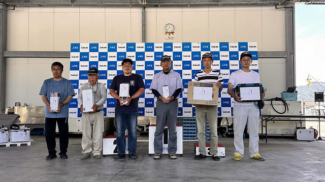 表彰式の後は恒例ジャンケン大会や抽選会などが開催され、大いに盛り上がりました。今大会の運営にあたり協賛をいただいたサンライン様を始め、各メーカー様、越喜来湾遊漁船組合様ありがとうございました。