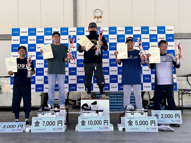 今大会はほとんどの選手が3枚以上釣りあげ、僅差の順位もあり、皆様の腕の良さが光りました。今後とも上州屋では皆様に喜んで頂けるイベントを企画してまいります。