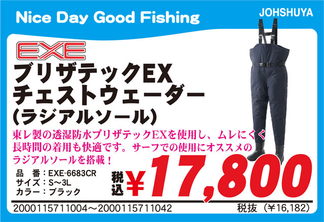 RYOBI“EXE(エグゼ)”シリーズより、「ブリザテックEXチェストウェーダーEXE-6683CR(ラジアルソール)」および「ブリザテックEXチェストウェーダーEXE-6651C(フェルトピンソール)」が登場!