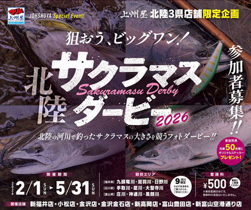 〔2026サクラマス解禁情報〕今年も胸躍る季節到来!サクラマスのことなら上州屋におまかせ!