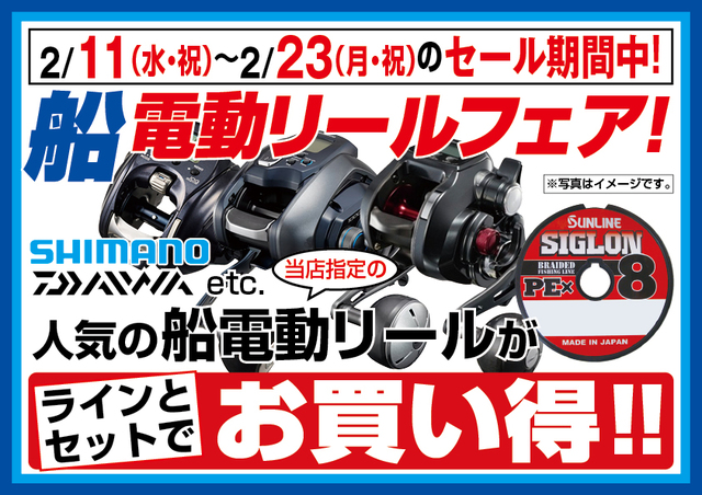 〔都内8店限定〕船電動リールフェア開催!シマノ、ダイワなど当店指定の船電動リールがラインとセットでお買い