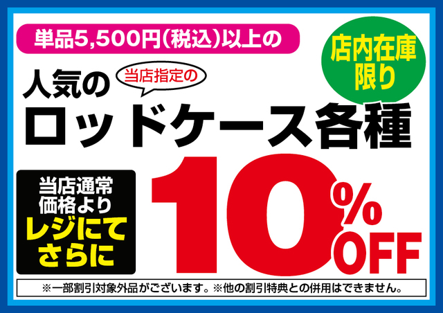 2月20日(金)からのセール期間中、当店指定単品5,500円(税込)以上のロッドケース各種が当店通常価格よりレジにてさらに10%OFF!