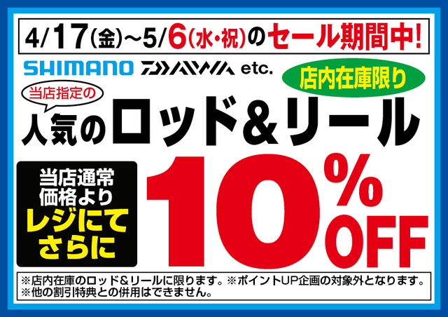 4月17日(金)~5月6日(水祝)のセール期間中、船電動リールフェア開催!シマノ、ダイワなど、人気の船電動リールがラインとセットでお買い得!