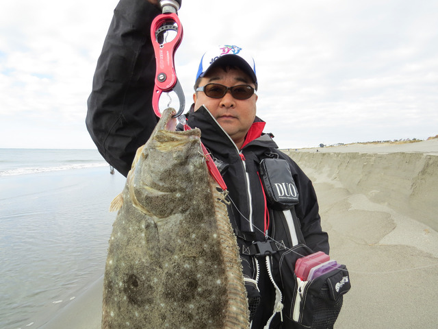 もちろん本命ヒラメの釣果も!8時~9時の時合で複数の釣果が出たようです!こちらは熱砂 ヒラメミノーIIIでの良型!
