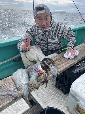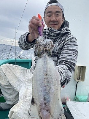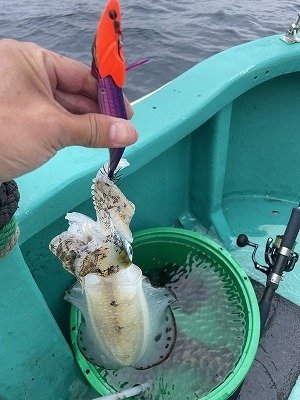 船の流れが速いので30g~40gのエギに30gのシンカーをセットして重めのセッティングでキッチリ底を取り、その後もコツ?パターン?を掴み3杯追加出来ました。