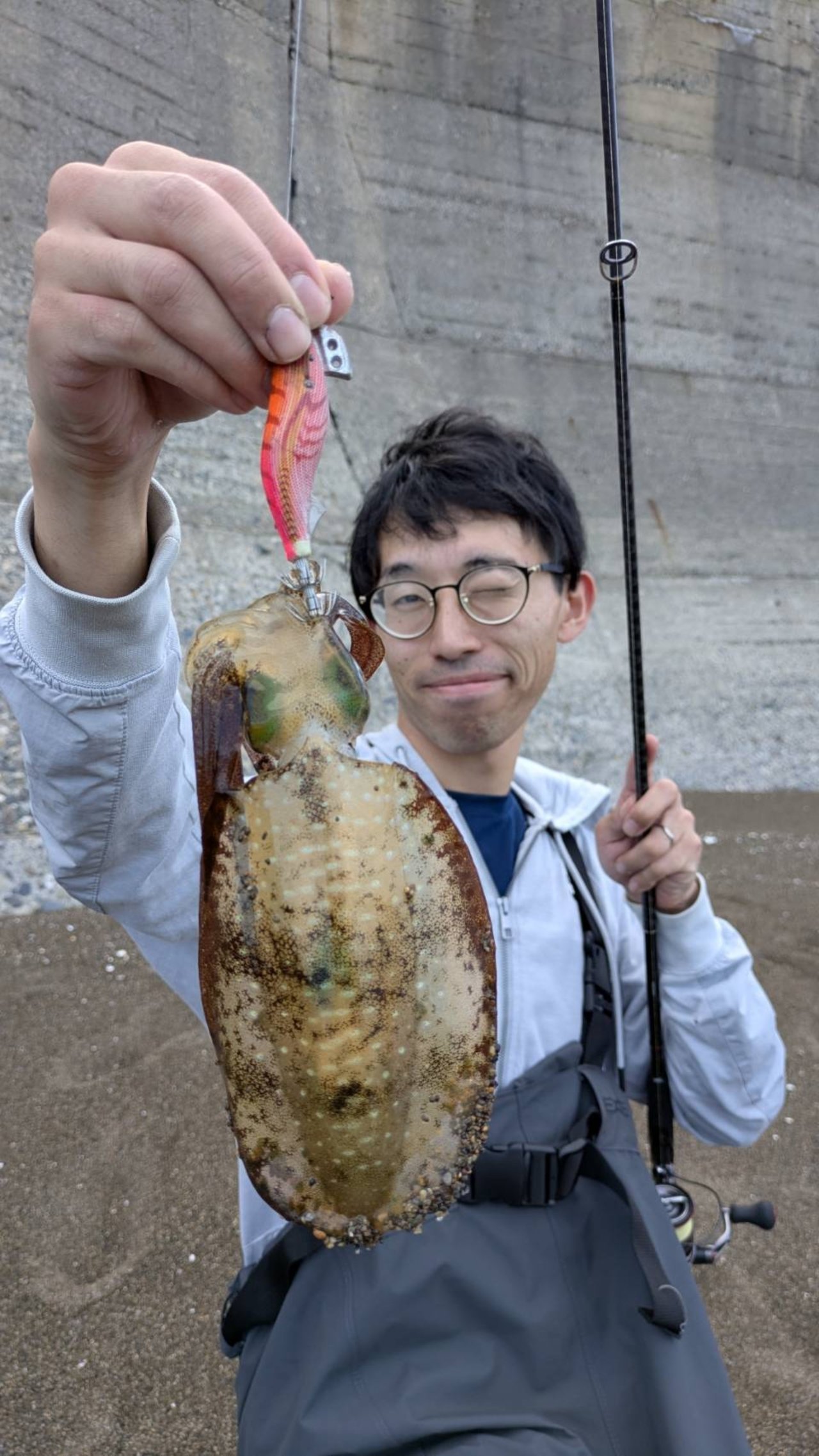 ワカシが少し抜けるとまたアオリイカが入ったようで1杯キャッチ。