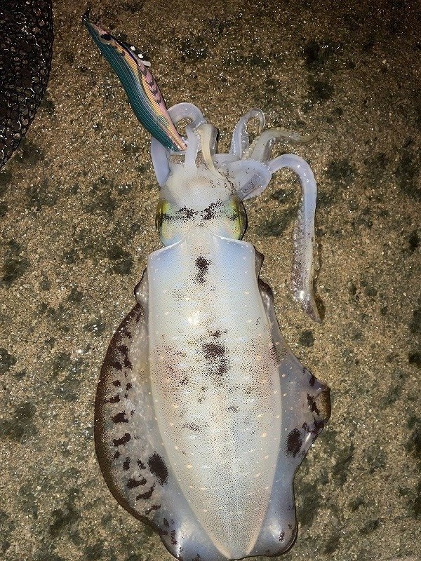 一段落した所で完全にアオリイカ狙いで別のサーフにポイント移動。2杯追加してサーフ釣行は終了。