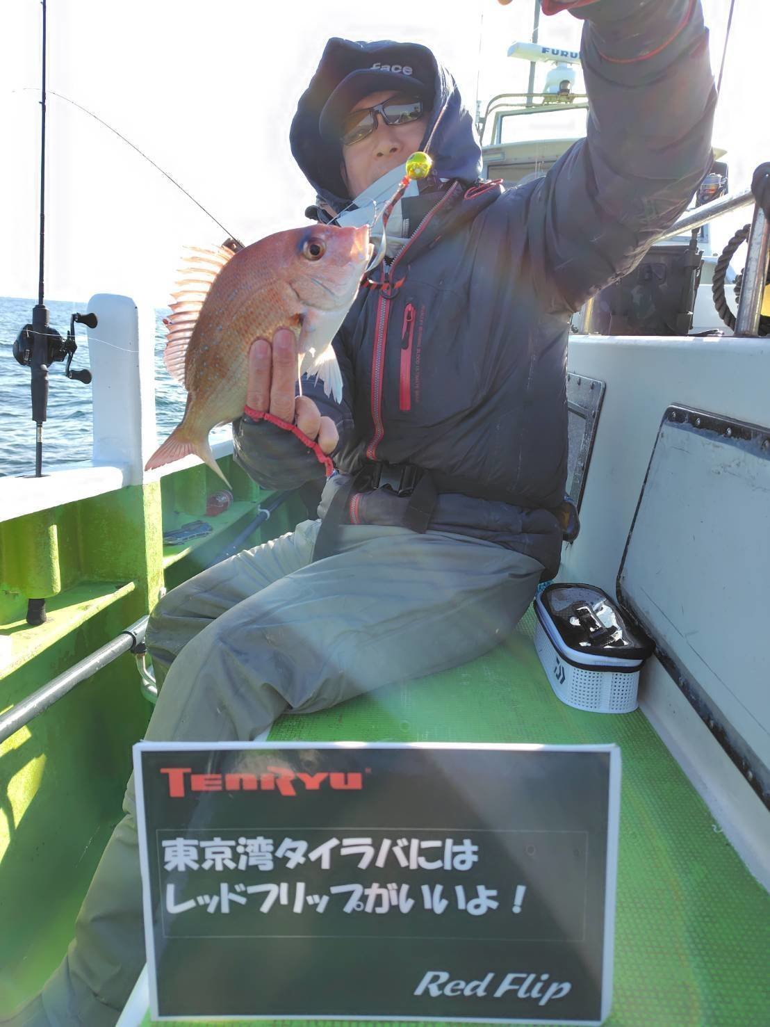 はい、連チャンタイラバ釣行でした。勉強熱心なワタクシ今回は天龍の人気タイラバロッド「レッドフリップ」を使用した実釣会に参加してきました。今回お世話になったのは走水港政信丸さん(なかなか予約の取れない人気の船宿さんです)ポイントは前日同様浦賀水道水深50m前後。それでも走水港からは航程15分程です。昨日の教訓を活かして強波動のネクタイで攻めると開始30分程で早くもアタリ!上がってきたのは1㌔ほどの待望の本命でした~使用したのは東京湾タイラバにジャストサイズのレッドフリップ642UL。チューブラトップながらソリッドのようなしなやかな曲がりで安心してやり取りできました!早々に1枚取れたので今日はイージーかも・・なんて甘い考えが芽生えましたがそうは上手くいくはずもなくその後は沈黙・・・沈黙の巻き巻きタイムと時々甘いもののもぐもぐタイムが続きますw