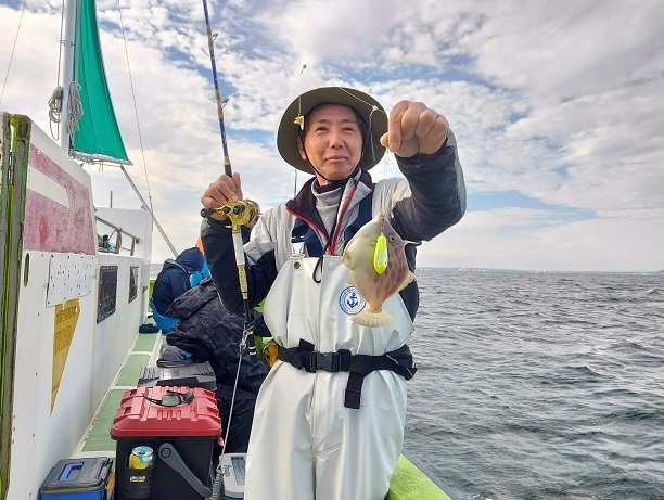 他のスタッフはもちろん専用竿を使っていましたが、当社オリジナルの「FUNEスタイルカワハギ」は操作性・感度も良く、入門者だけではなく中級者にも十分に満足できる竿です。硬さが2種類あるので状況により使い分けると更に釣果を伸ばす事ができるでしょう。