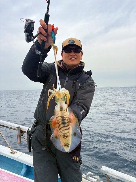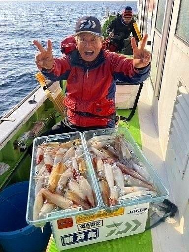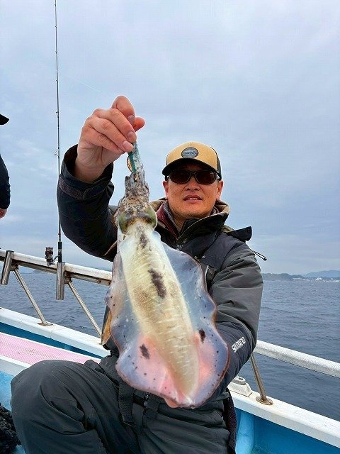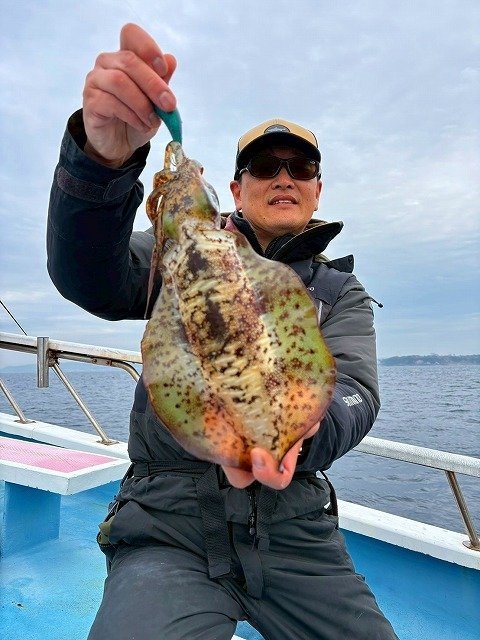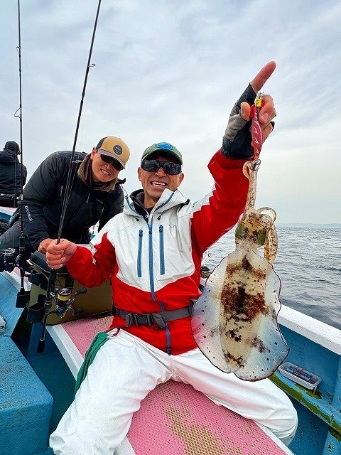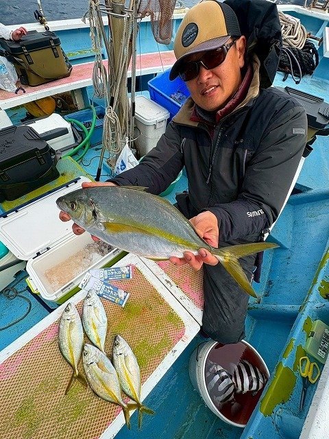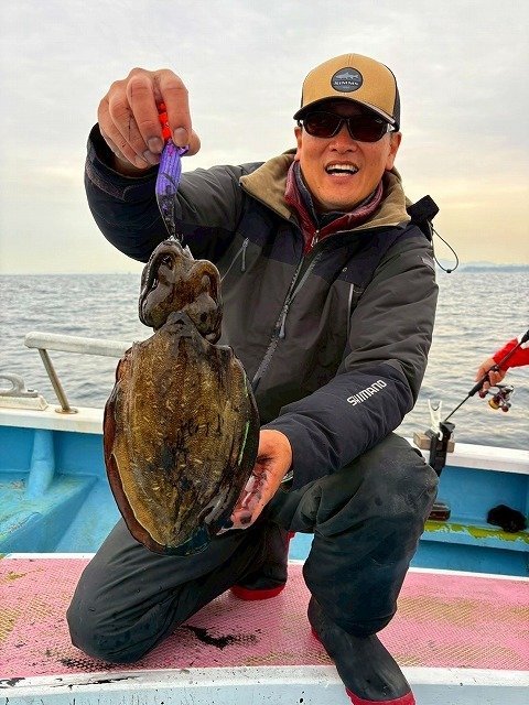 毎度~!スタッフ福島です。少し前の釣行(11/25)ですが、相模湾シマアジ五目&ティップランエギングのリレー船行ってきました。諸磯港海帆丸さんより出船。先ずはシマアジ五目でシマアジ他を狙います。下からコマセを撒いてシャクって来るとすぐアタリが来ました!ギューんと竿が絞り込まれます!なんと朝一からシマアジが釣れました!サイズはやや小ぶりでしたが嬉しいですね!!周りもポツポツと釣れ船内は大賑わい!!シマアジの他にホウボウやシマダイ、イナダなど多彩に釣れ楽しい五目釣りに!途中今までに無い引きを見せて上がって来たのは1.5㎏の良型シマアジ!これは嬉しいサイズ!!さらに強い引きのアタリもありましたが、無念のフックアウト!!悔しい~~!!なかなか難しいですね~!次回の課題です!後半はティップランエギング!!40mラインから開始すると、すぐにフワフワっとアタリ!すかさずアワセてヒット!!こちらも幸先よく700gのアオリゲット!その後も船中アオリ、コウイカ混じりでポツポツ楽しめました!シマアジにアオリイカ、コウイカと高級魚が釣れて満足の釣行でした!!各地でシマアジ釣りが好調に釣れてますね~!当店ではシマアジ仕掛け各種取扱中です!ご釣行の際はぜひ当店をご利用くださいませ!!