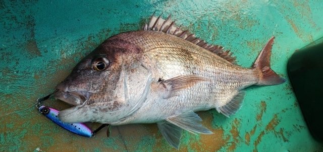 幸いこの日はマダイの反応が良く、幸先よくマダイをキャッチできました。その後もすぐに2枚目をキャッチし、お土産が確保できたので、ジギングでブリ狙いにチェンジ!