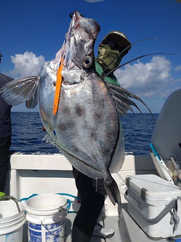鶴岡店ルアー担当:跡邊です。今年から中深海スロージギング始めてみました。お世話になったのは酒田港【イザナミさん】中深海スロージギングはマニアックなイメージが強くアタリが少ない上にボウズが当たり前みたいな難しい釣りのイメージでしたが…いざ挑戦してみると意外と難しくないのかも!?思ったよりもアタリが多く本命の他にもソイ、ウスメバル、ムシガレイ、カツオ、スルメイカ、カガミダイ、オニカサゴなどたくさんの魚が釣れました!!たまに岩も!?今年はアラを釣りたくてチャレンジしたので狙うレンジはほぼボトムと難しい棚取りもありませんしシャクり上げないので腕が疲れず楽チンです!回収は大変ですが…。まだ始めて間もないのですが想像してた100倍楽しい釣りでした!!何よりも釣れる魚が全部美味い!!!タラの白子、カガミダイの肝、イカ焼き、ソイの湯上げ、カレイの一夜干し、カツオのタタキ、オニカサゴのから揚げ、毎日のようにご馳走でした。美味い!スロージギングおすすめですよ!狙う魚によって道具立て変わりますのでタックル、ジグ、フックセッティング等、是非ご相談くださいませ。次回はもう来年かな~?スタッフ:跡邊