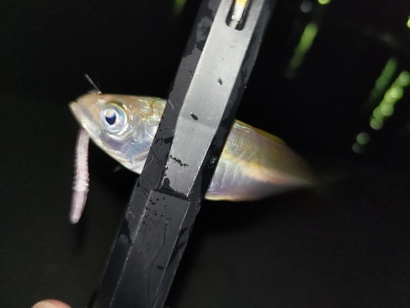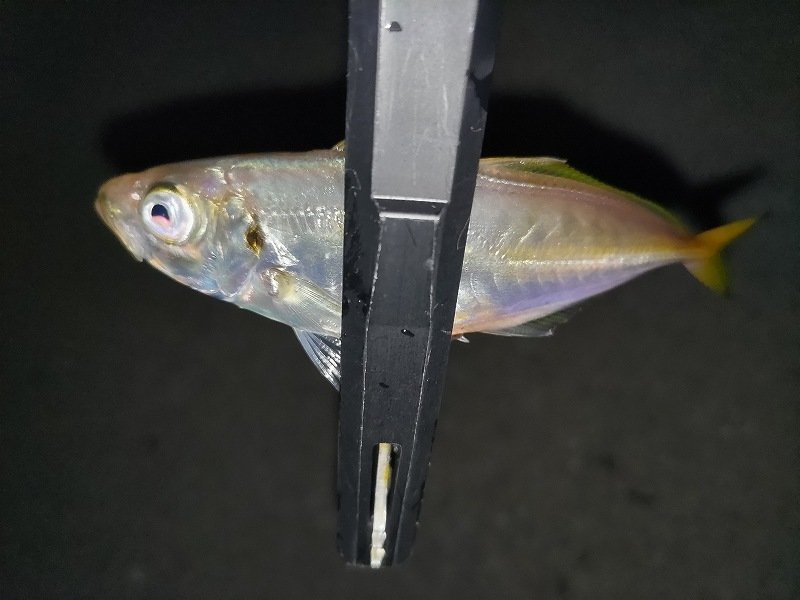 仕事終わりにアジング!夜のうちは7cm台とか極小豆アジしか見つけられません。途中から眠くて朝マズメも寝てしまい日が出てから再スタート。豆アジはいっぱい見えて逃げない豆アジも見つけられたのでじっくり釣っていきます。見えるのは10cm無いようなサイズ。見えないレンジまで沈めると10-13cmくらいが順調に釣れてくれました!そして突然18.19cmが2.3匹連発!まともなサイズも回遊していて、良いサイズは回遊に当たるかどうかといった感じ。それでも行くたびにアベレージサイズはちょっとづつ大きくなっています!豆アジはワームもハリも小さくすると数釣れますよ