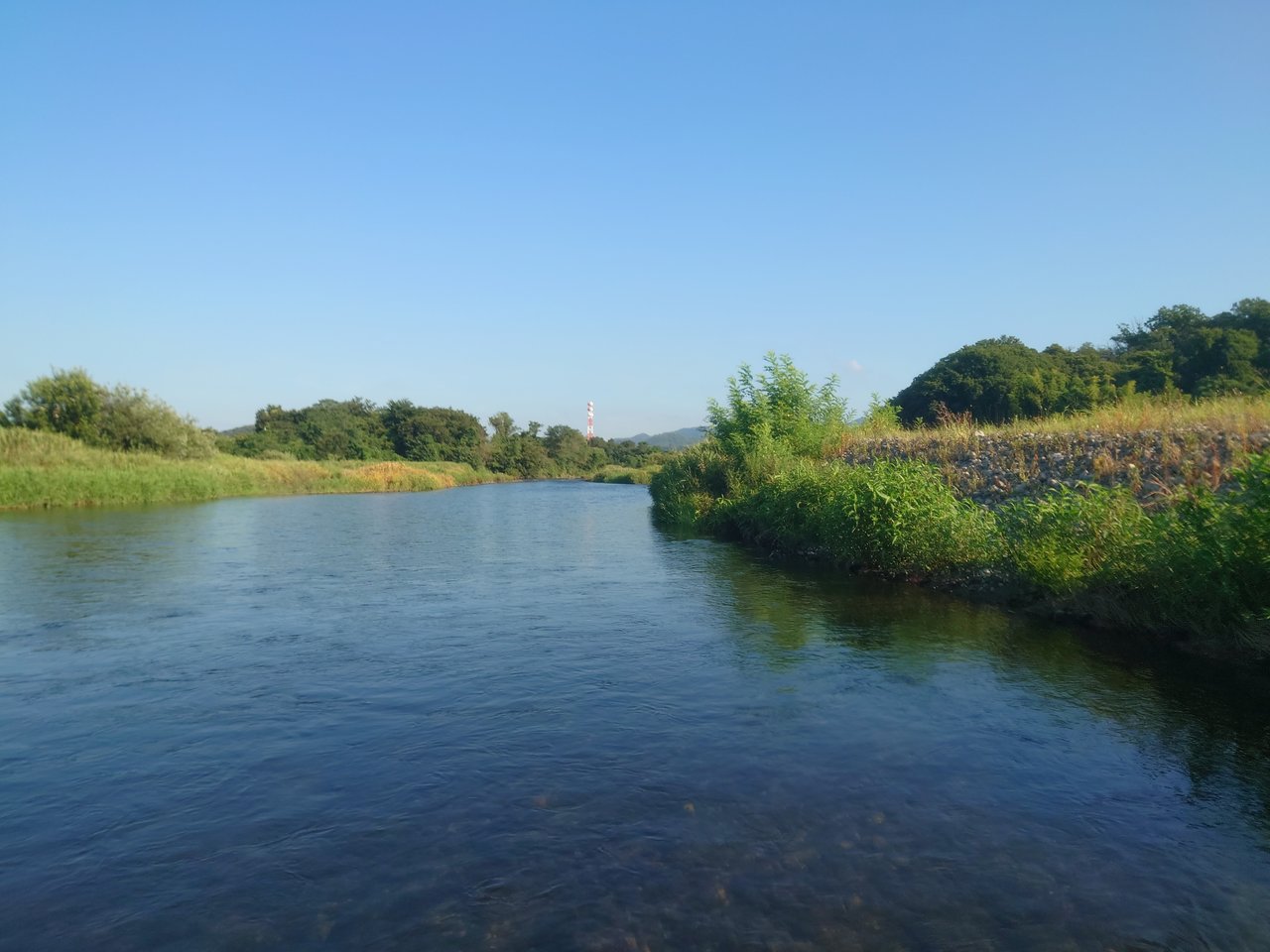 今回は下流部での釣り。水位がさがり水が絞れてきました。朝方の水温がやや下がっていたのか朝方おオトリ交換に時間がかかってしまいましたがオトリが野鮎に変わってからは急瀬の流心脇を中心にコンスタントに掛かり、後半は早瀬のポイントへ移り釣果を伸ばしました。台風の影響が気になりますが渡良瀬川の鮎釣りは調子があがってきました。