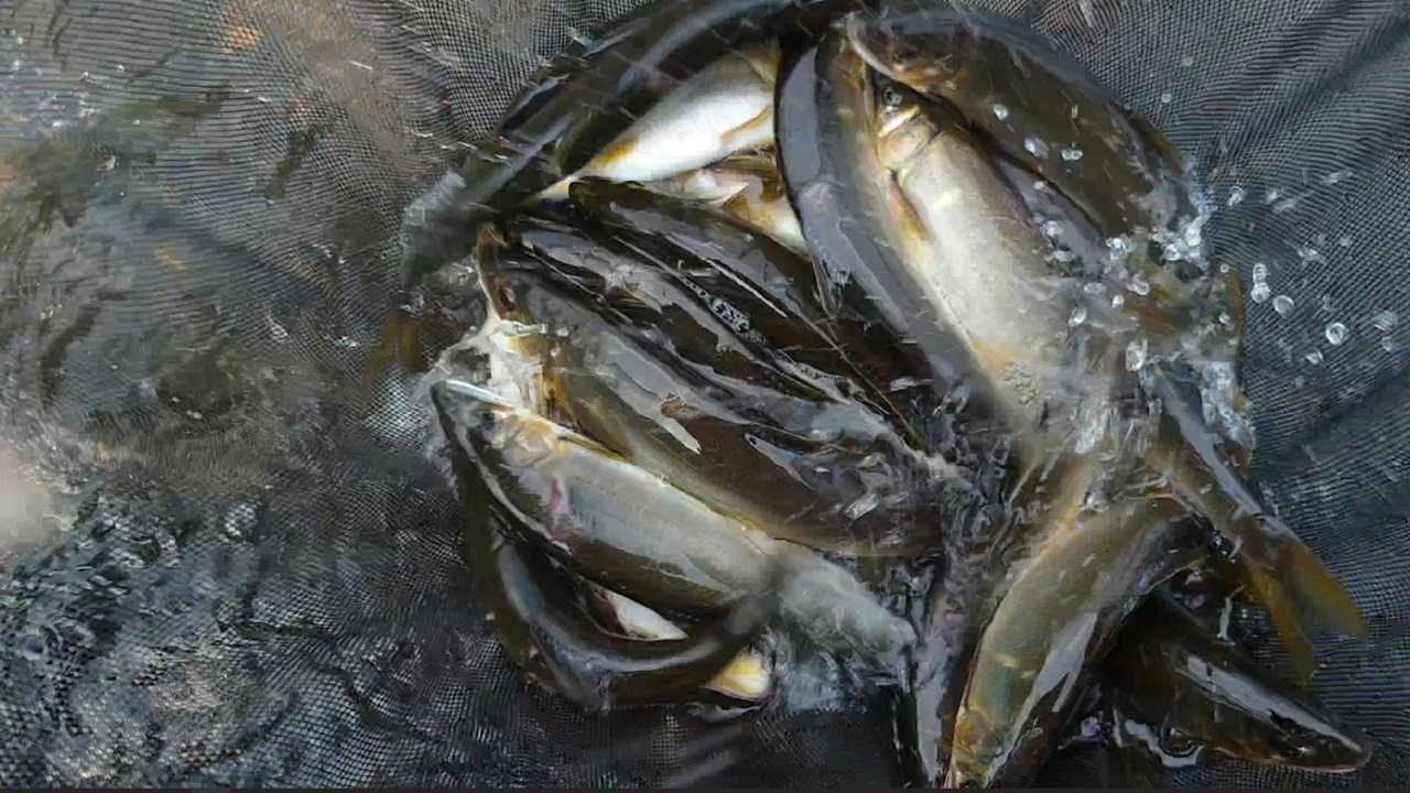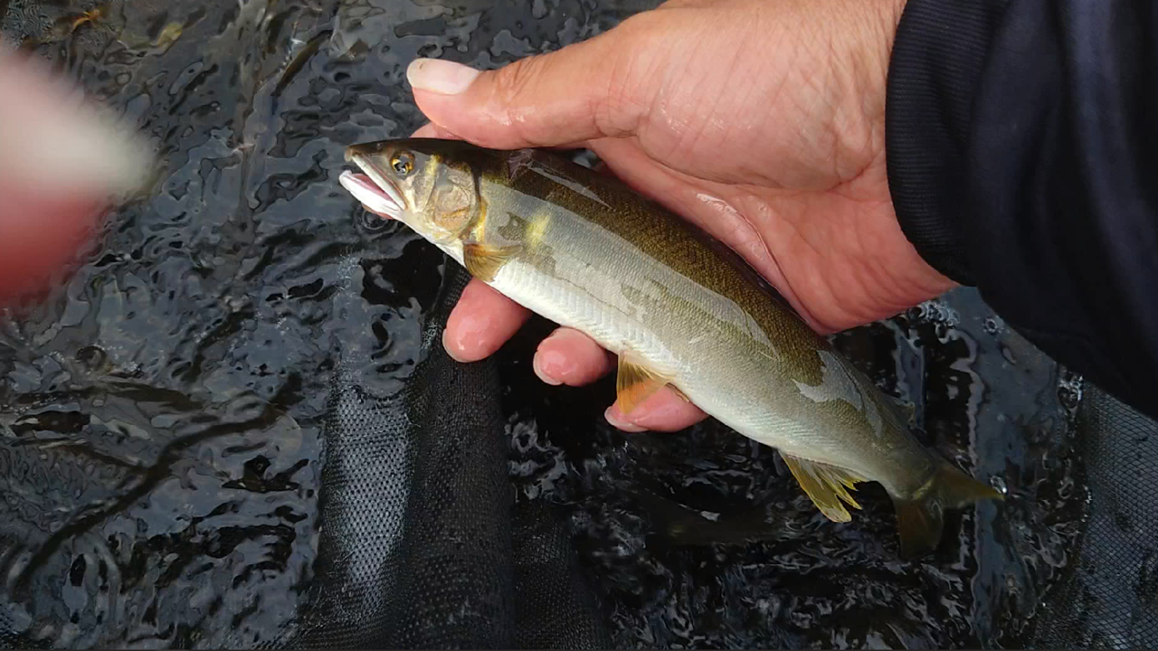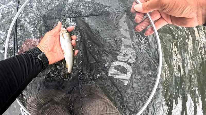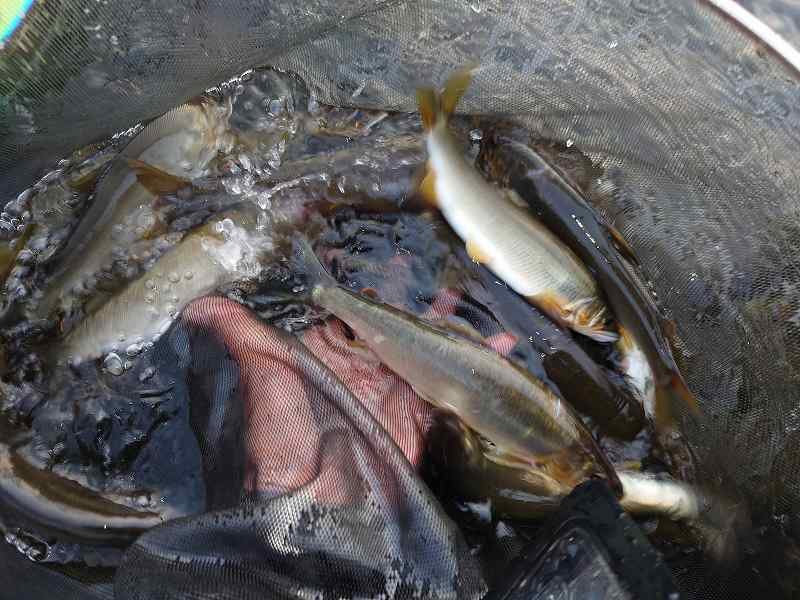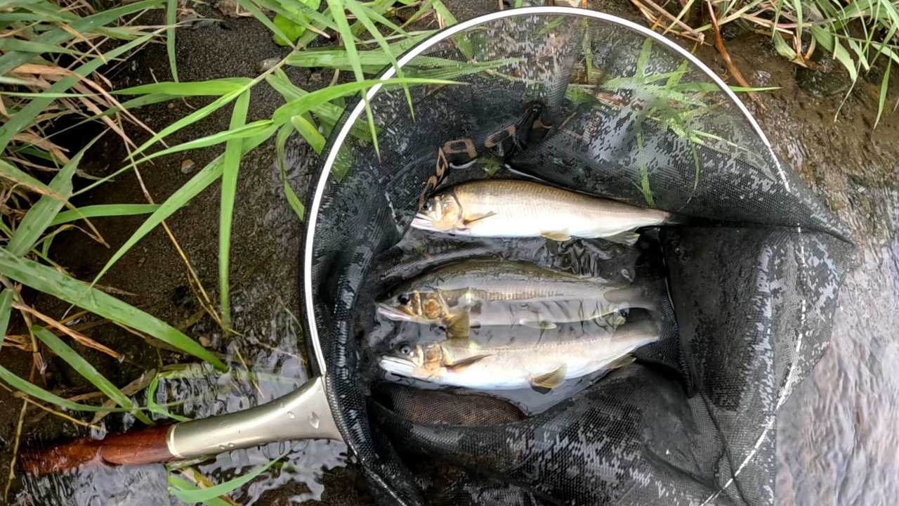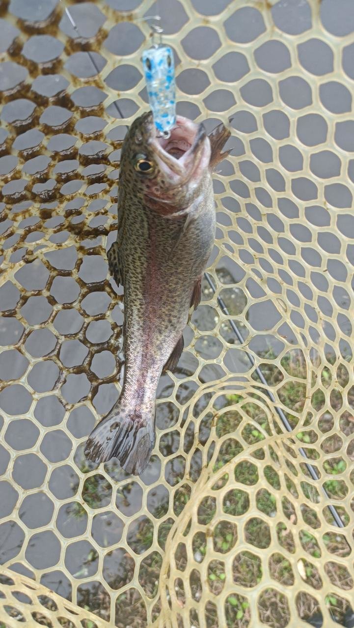 日の出から午前10時前までの釣り、テニスコート前での釣果です。ヒットスプーンはフォレストMIUシェル4.2gで見えている魚になんとか反応させて喰わせました。もう少し水量があると活性が上がると思うのですが週末明けでなかなか難しい釣りとなりました。