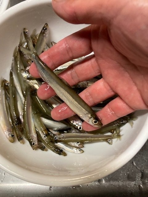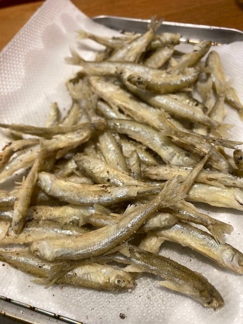鬼怒川漁協管轄の東古屋湖へワカサギ釣りに行ってきました。今年は秋のニジマス放流を行わずに、ワカサギ釣り場として秋のシーズン営業となっています。かなり減水しており、事務所前~ダムサイトがメインの釣場になっています。(ワカサギ券1日2200円、ボート2500円)魚探を入れながら事務所前から移動していくと、所々に反応は見られます。水深は現在最深部で17mくらいといったところでしょうか。ダムサイトに近い方が反応が強かったので、群れの入りを見ながら8mラインにアンカーを打ち釣りをすることに。底中心に探るもポツポツの反応で、時折入ってくる中層の群れ(4~6m)に仕掛けを合わせると、すぐにアタリが出ます。魚探の画面を見ながら反応に合わせていく釣りで109匹の釣果でした。東古屋湖のワカサギは臭みも無くサイズも7cmクラスが多く、から揚げや南蛮漬けで美味しくいただきました。これから水温下がると底に魚が固まってくると思いますので釣りやすくなると思います。ポイント開拓が楽しい釣り場です。