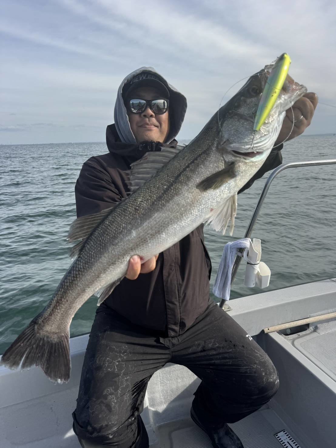 10月に続いて2回目の東京湾へ!!! 今回が2025『東京湾BIGベイトシーバスツアー』ラストで御座います!! 金銭的にも距離的にも年に2回位が限界で、毎回真剣勝負です!!ww 今回のメンバーはコチラ👇 ・一関店高橋 ・北上店小岩君 ・軍団長 朝一はランカー狙いで全員メガドッグ220で出ればランカーエリアでドキドキのキャスト!!! しかし、あいにく反応は得られず、次の本命へ!! ここでもメガドッグへの反応が悪いので各自、レイジーやバンディットにチェンジし、レンジを少し下げてサーチ!! ここからファーストヒットの軍団長を始め、小岩君も続き、全員でポツポツ釣れだし、デビュー戦の軍団長はあまりの楽しさに無口に。ww とりあえず朝一で全員無事キャッチという事で一安心!! ここからはベイエリアのランガンへ!! 潮止まりでもポツポツ反応を貰え、今日は凄く良い日だな~と幸福感に浸りながら、いよいよラスト!!ラスト流しも見事全員安打!!! 自分にもペンシルで2本目のランカー!! 軍団長はメガドッグ220で念願の初メガドッグフィッシュ!! そしてラストは小岩君がバンディットで締め、終了!! 大変、大変たのしゅうございました。。ww