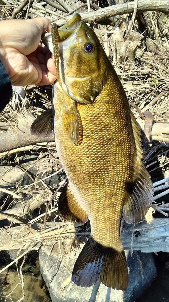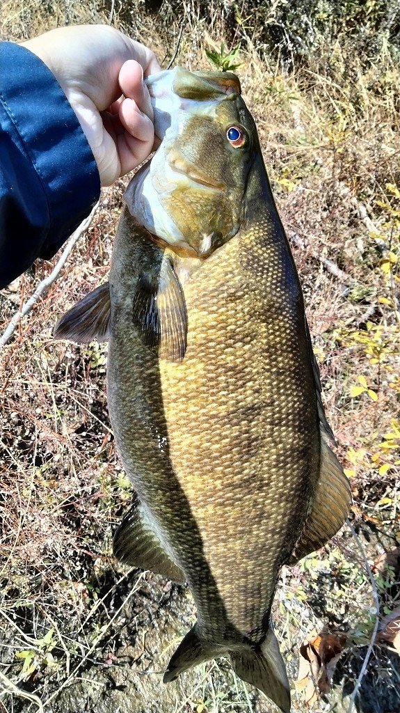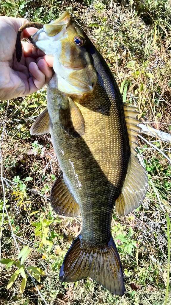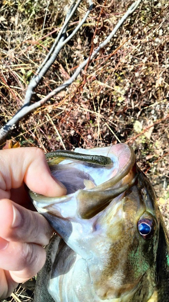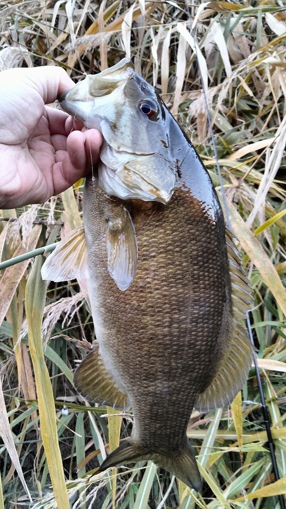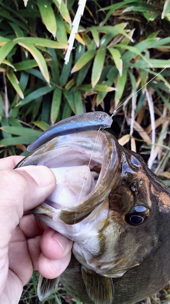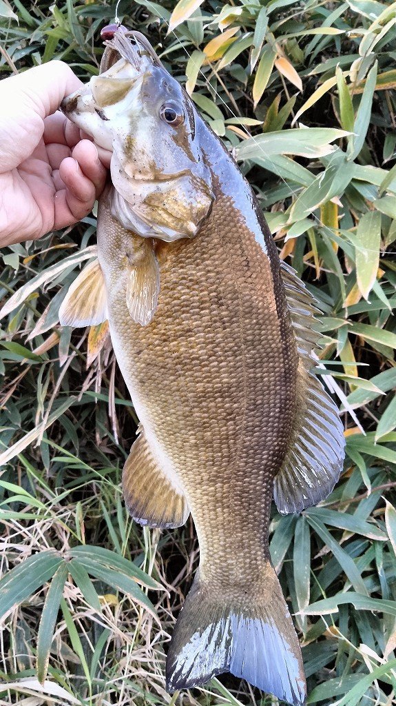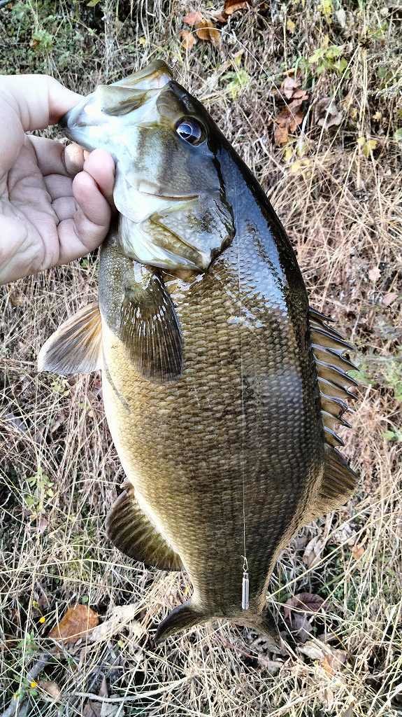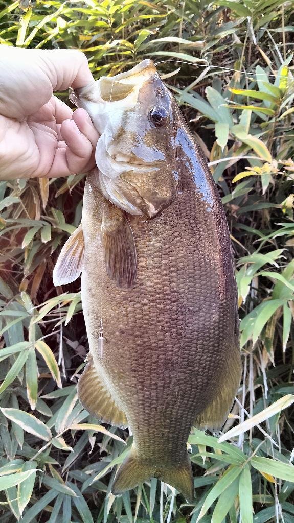 朝の短時間釣行です。最初に流れの強いポイントに入りますが反応がなく、増水で水深が深くなったポイントに移動します。ヴァラップスイマー3.3を巻いているといいバイトがあり35cmが釣れました。その後色々やりますが反応がなく、ドロップショットミノーのダウンショットに変更。ショートバイトと戦いつつ43cmと41cmを釣りました。その後は強風のため帰宅です。水温急低下でだいぶ活性が低くなってきました。