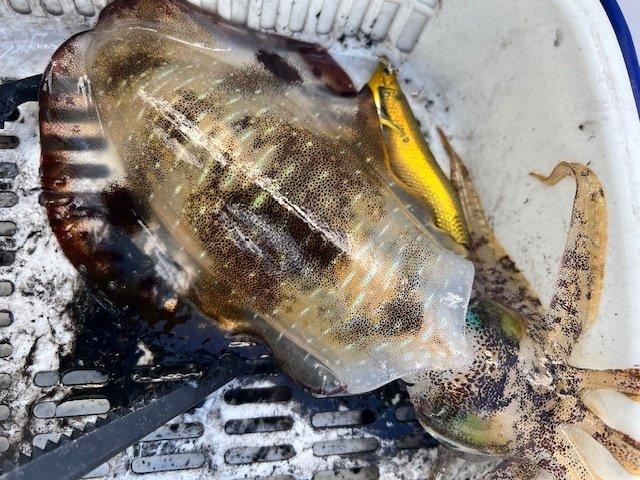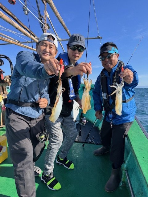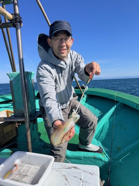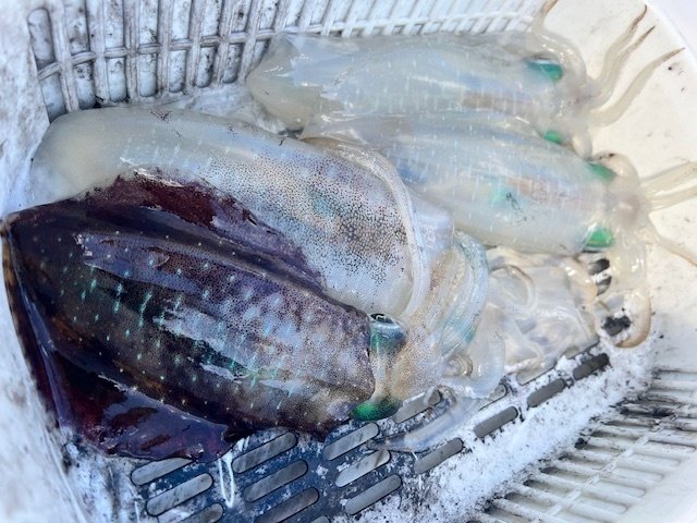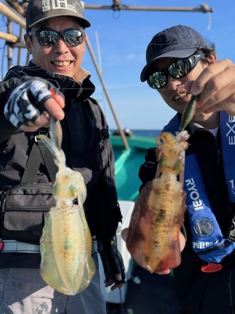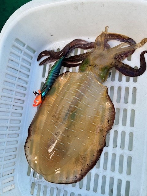 予報がハズレ、東の風10m以上でしたが強行してきました!案の定、流れは速いしウネリは強いしで、いい釣りはできませんでした。船中40杯ほど、個人釣果は13杯とかなり厳しい内容となりました。船長曰く、ここ数日の冷え込みで水温が低下しているのも釣れない原因のようです。それでも、お客様が胴長25cmを釣るなど、アベレージがデカいのはこの時期ならでは。胴20cmを超えてくると、乗った瞬間の重量感は病みつきになりますね!この日はエギよりも、シンカーのウエイト調整やマメな入れ直し、シャクリ方などで反応が変わりました。行くたびに状況が変わるので毎回違った発見があって、そこもまた楽しい所ですね!荒れる日が多くなるので出れる日も少なくなりそうですが、後半戦も楽しみたいと思います!