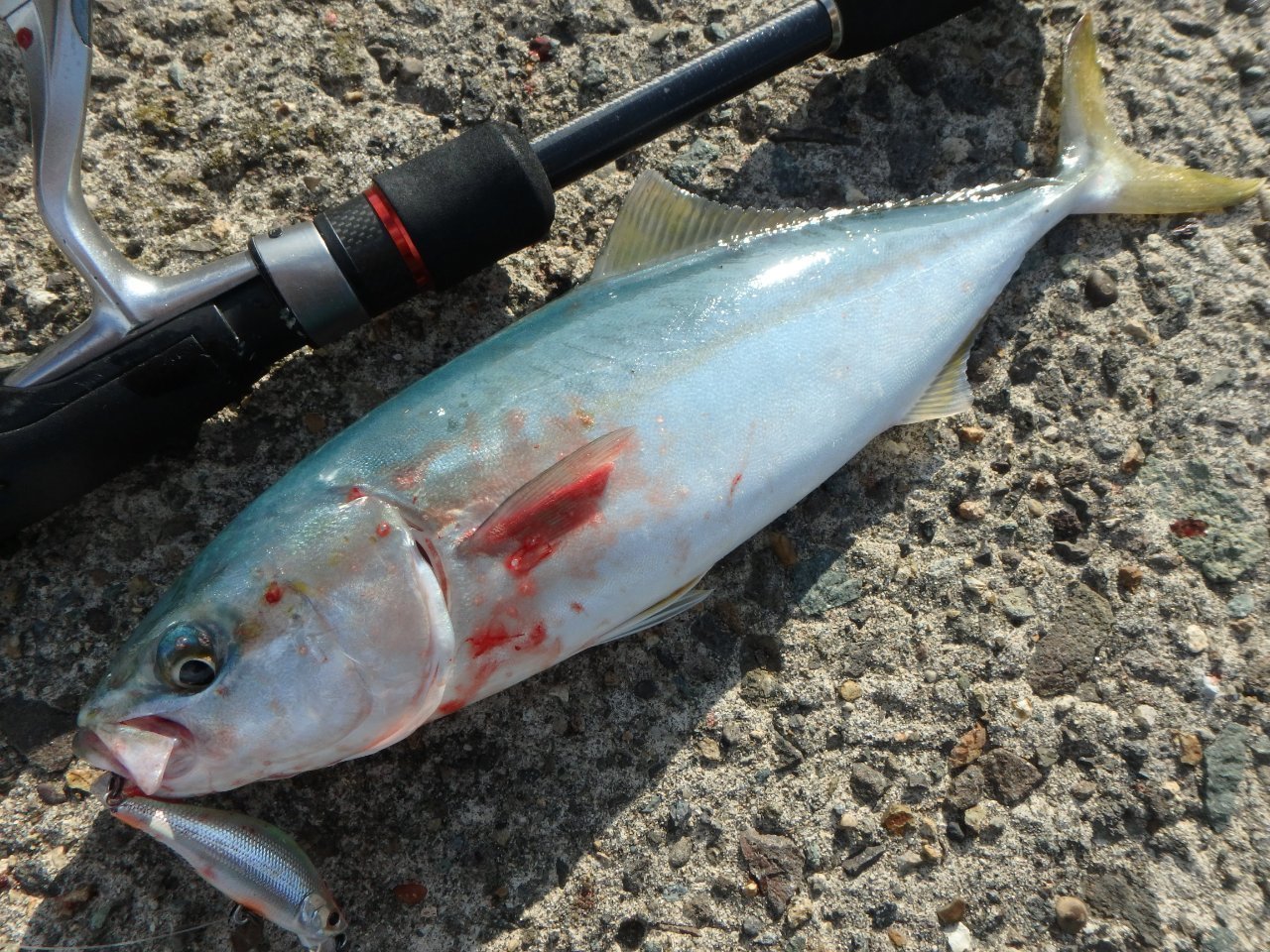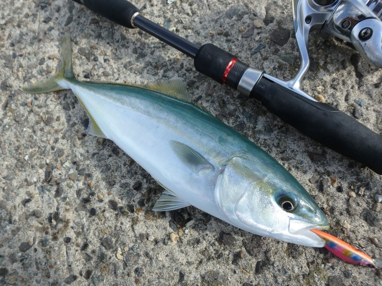 アジの姿は見えませんでしたが水面がざわつき散発的にナブラの起こる漁港でミノーにヒット