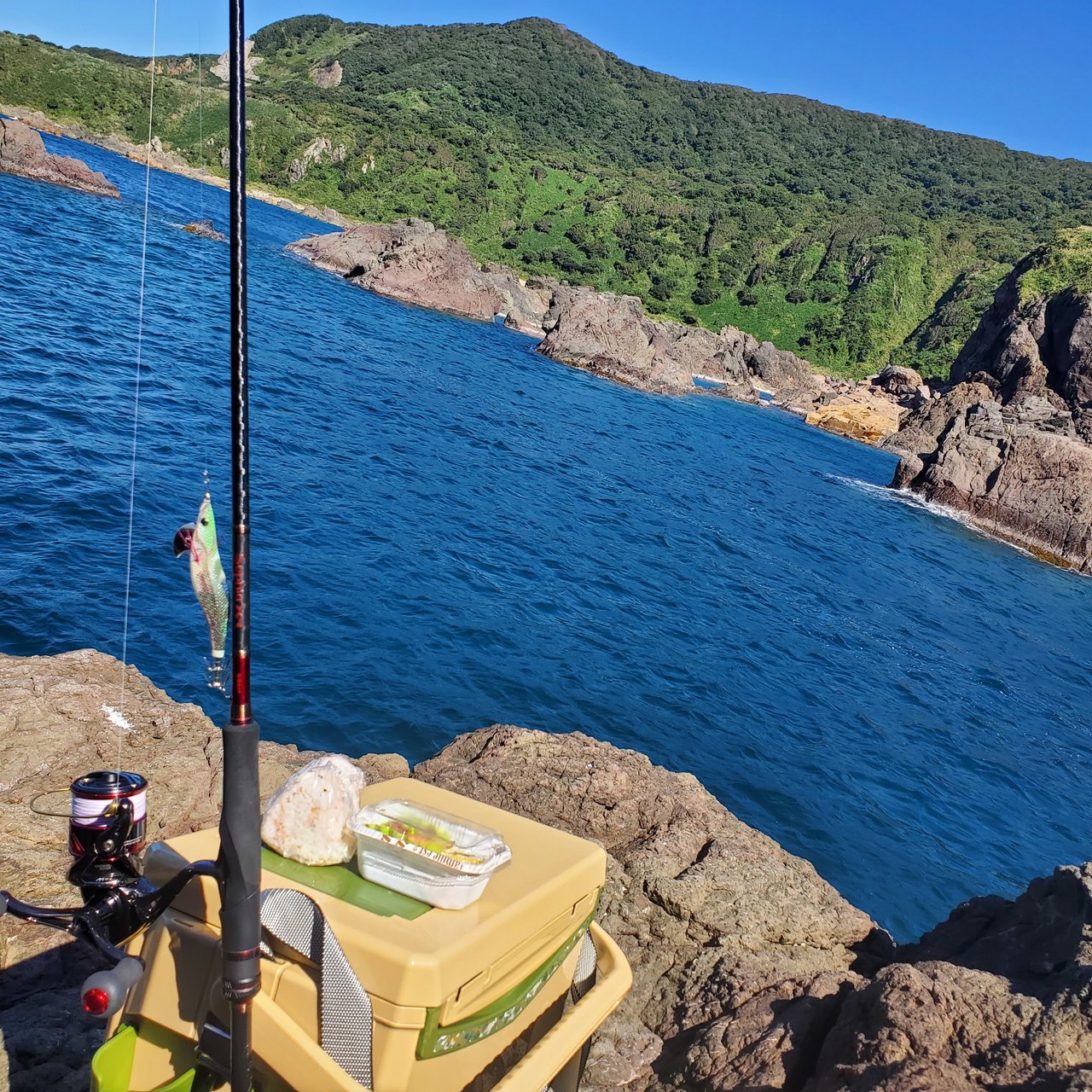 スタッフ星野、今回の釣行は男鹿沖磯へ!アオリイカ釣りに行って来ました。男鹿沖磯、連日釣れている情報だけに気分はルンルン♪しかし釣れないかも(泣)というプレッシャーも…。…はい!的中!不甲斐ない釣果でした。素晴らしく悪条件の中でしたが(本当に海が酷かったんです…爆風に潮狂い(笑))言い訳は…しません(泣)だって…同じ日、ティップランの店長達は釣れている…(笑)ですが、そんな状況の中で胴長17㎝のアオリイカのギュイーンを堪能できました♪たまらん♪小さなアオリイカも真っ黒できてくれました♪早々に心折れましたが、お弁当食べて楽しい沖磯ピクニックにしました(笑)また頑張ります♪