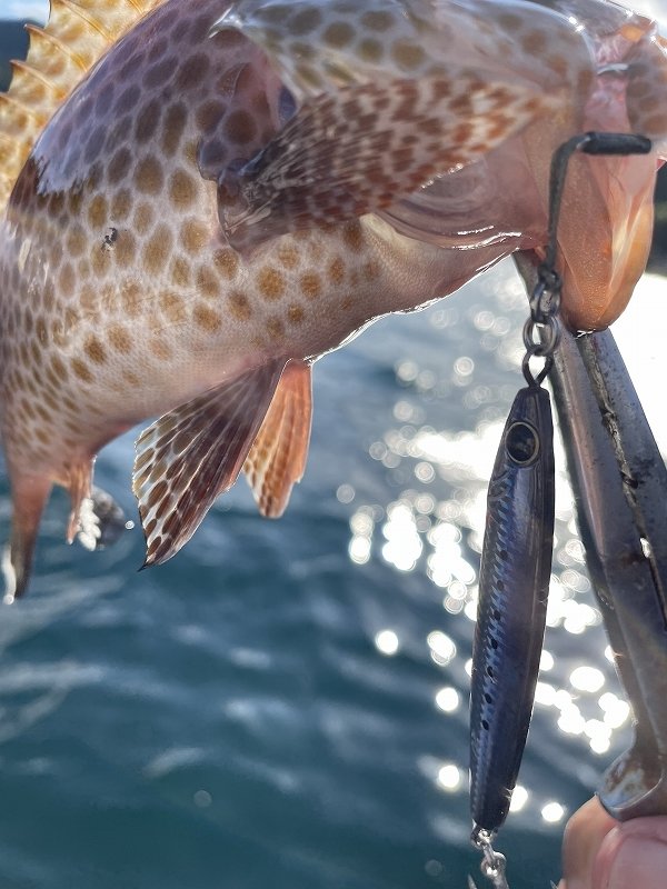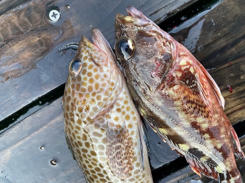 良型のアカハタとアヤメカサゴを釣られていました。下田沖も水温が下がり始めアカハタも良型が釣れ始めました。