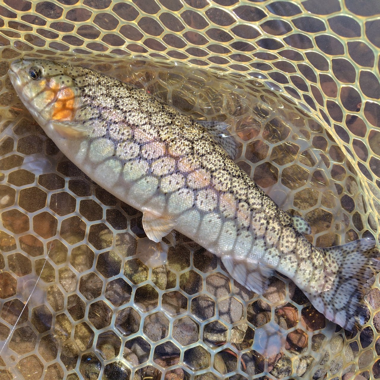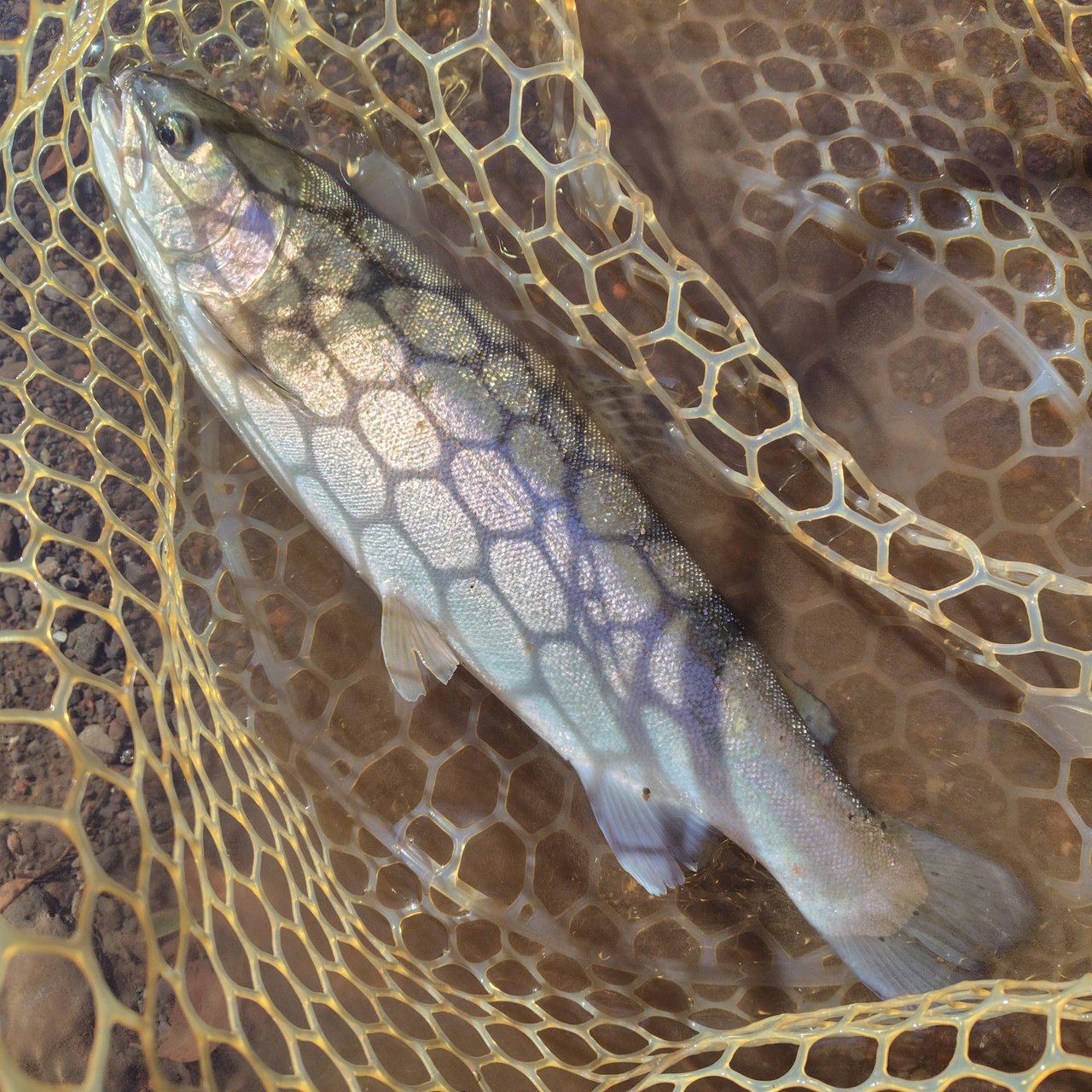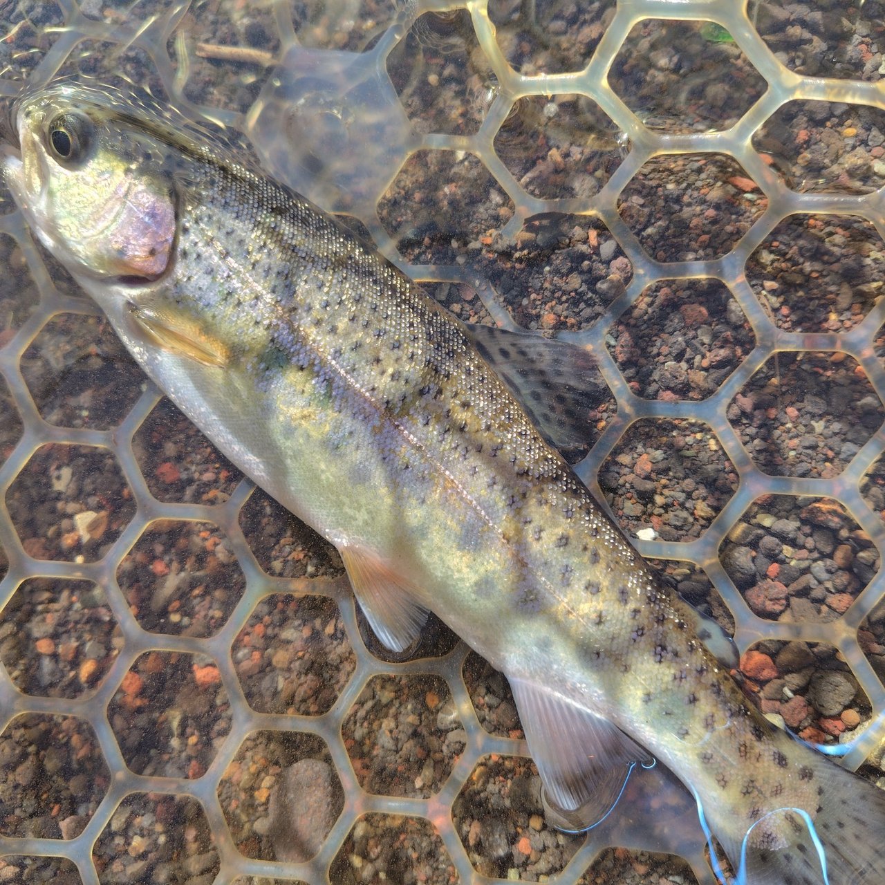 魚体のキレイで元気なニジマスが楽しませてくれました!ながれの緩いポイントだったのでタックルやルアーはエリアトラウトで使うもので釣れます!
