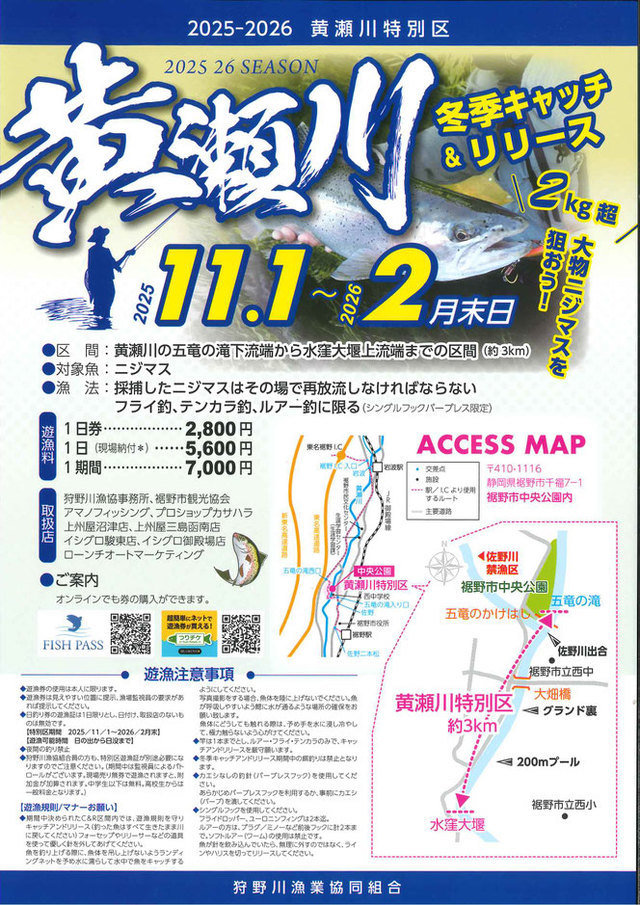 今週末11/29(土)追加放流があります!黄瀬川キャッチ&リリース特別区の入漁証を当店でも取扱いしていますので、ぜひチャレンジ下さい!!