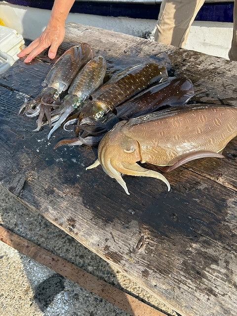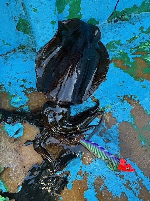 朝一は港前の水深20mのポイントを狙いましたが反応がなく早々と城ヶ島沖へ移動。城ヶ島沖のポイントは30mぐらいでこの日は潮も流れていたためシンカーは20gをセット。数投した後ファーストヒットはワタクシに。その後渋い状況が続きますが船長も船を色々入れ直してモンゴウやスミイカなどで楽しませていただきました。この日の竿頭は同行者のティップランにどハマリ中の上州屋スタッフで4杯。他の方々は0~2杯。今年は澄潮が続き釣果が安定しませんがこれからは大型のアオリイカも出るのでいかがでしょうか。