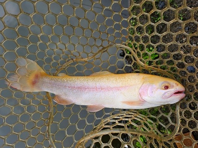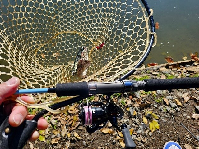 今期2度目のジョイバレーへ!!今回は朝から5時間券でチャレンジ。大会翌日で魚メッチャ見える!!でも案の定叩かれまくってるのか凄い反応が良い訳でもない・・・この日はフォールやクランクのデッドスローに反応が鈍く、ルアーを見せ過ぎるとダメな感じでしたね。期待していた大物ロックは・・・掛けたんですけど手前まで来ていきなり走り出して痛恨のラインブレイク。エステル0.3号はたまに結束部分をチェックしてあげないとダメですね。しかしその後アルビノの良型をキャッチ出来たので良しとしておきます^^;結果、少し早く上がってトータル17匹でストップフィッシング。もう少し気温が下がるとパターンも見つけやすいんでしょうけどね・・・またチャレンジしに行きます!!詳しい釣り方やヒットルアーは店内POPをご確認下さいませ~♪