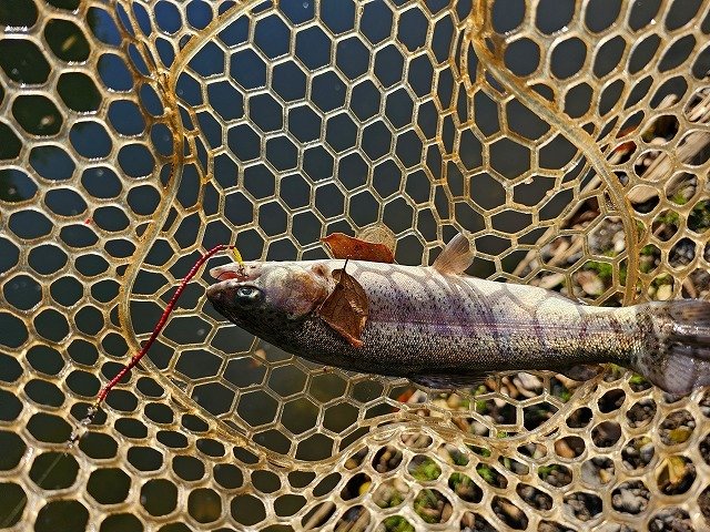 午後から5時間券でジョイバレーさんにエントリーしました!平日の昼間にも拘らず駐車場ほぼほぼ満車!!ニュータックルを携え釣り座に着くと魚メッチャ見えます!!結構な数が浮いているので表層から攻めるもどうやら叩かれまくったっぽくなかなか反応してくれません。もう思い切って見えている魚の下をクランクで攻めるとヒット!まずまずのコンディションの魚が顔を見せてくれました。でもなかなかパターンらしきものが見つからず、連発って感じになりません。結局早いルアーローテーションで魚に飽きさせないようにしながら拾い釣りみたいな感じになり、最終的に16匹キャッチで終了!!夕方に暗くなる直前一瞬だけ活性が上がったようにも感じましたが・・・僕は完全に時合いを逃しました。。。赤や黄色に染まった木々を眺めながらのエリアトラウト、今の季節しかしか味わえない釣りを堪能してみては如何でしょうか!?!?ヒットルアーや詳しい釣り方は店内POPにてご確認下さいませ~♪