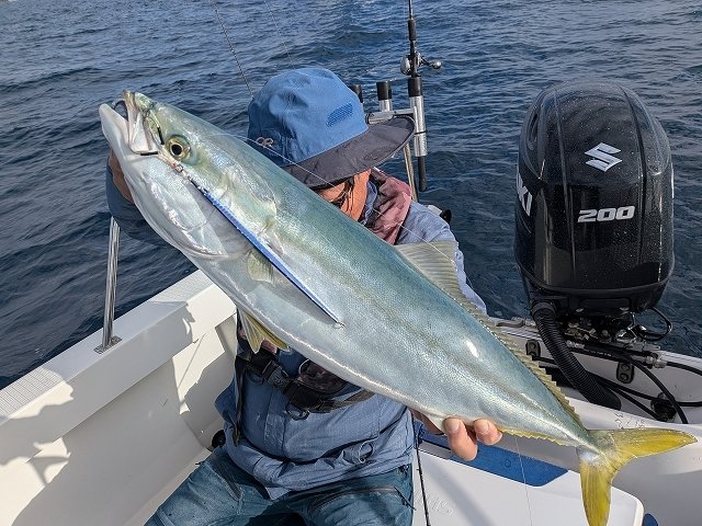 サイズはイナワラからワラサといった感じですが、水温もまだ20度近くあり、引きはバツグン!