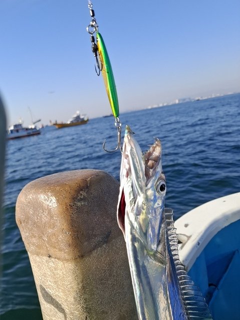 ウワサ通りに朝イチから船中ポンポンとタチウオが抜きあげられますが…ちょっと小さい?