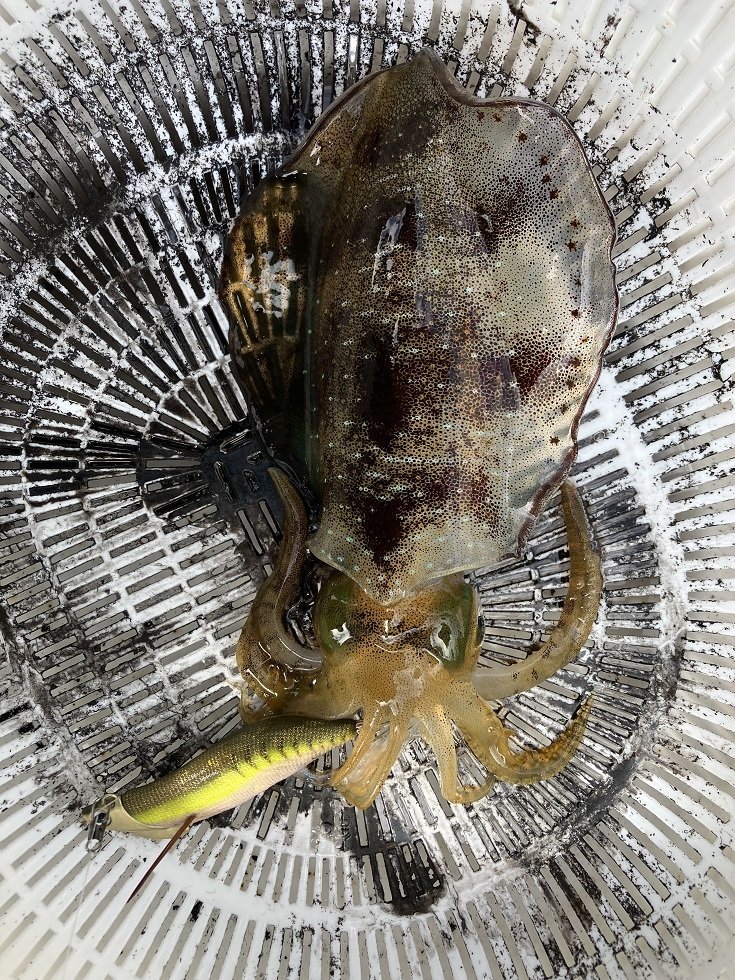 成長の早いアオリイカはすぐに胴長20cm以上に育ちます。今年は丘釣りが厳しいですが、船からのエギングではまずまず釣れています!10月、海が荒れなければアオリイカ復調してくれるかもしれませんね。