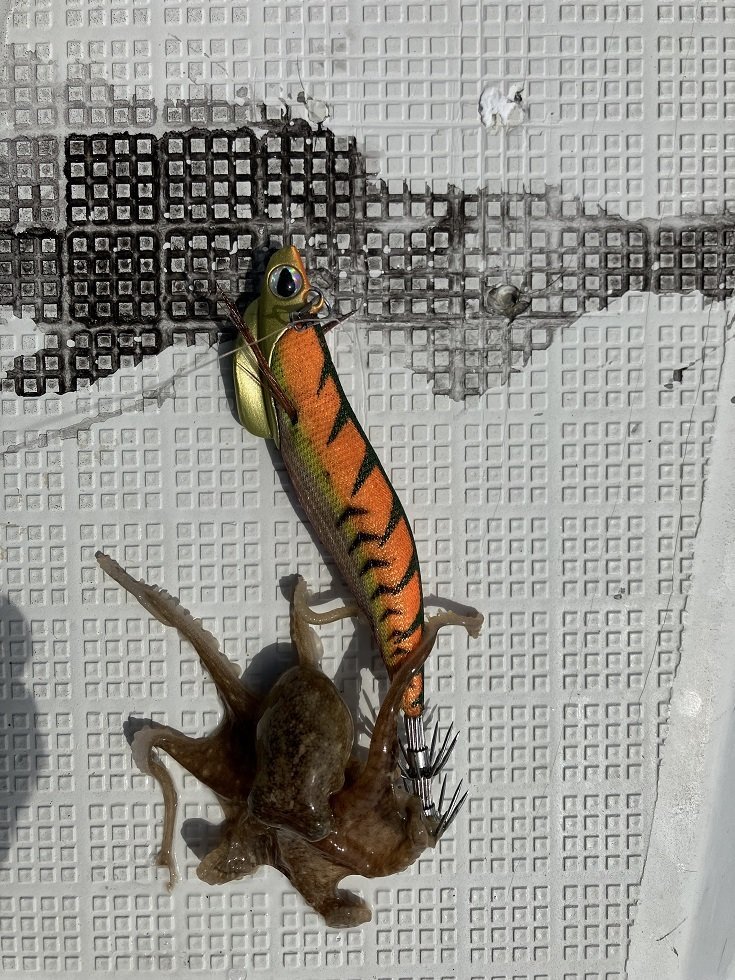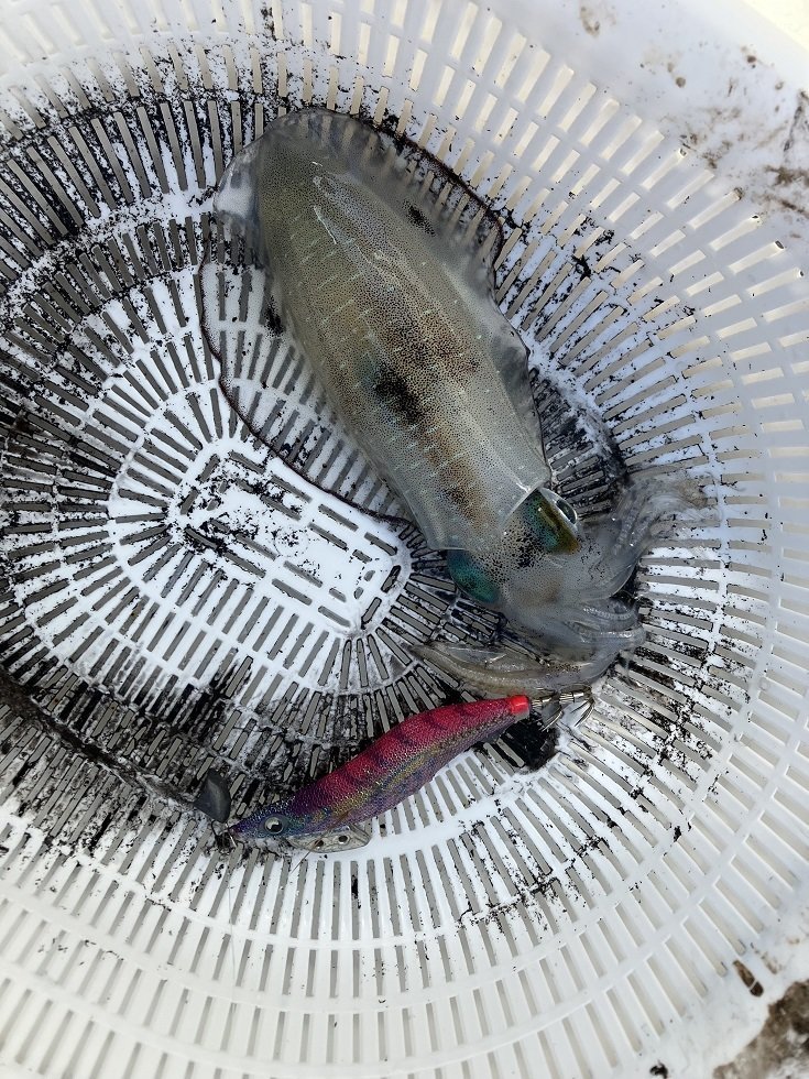 1日目はお昼過ぎから釣りを開始し、明るい時間はランガンでポイントを周り、2杯キャッチ!!夕まずめのタイミングで友人とダブルヒットもあり1日目は4杯で終了。2日目は南西の風が強くなり午前中に少し竿を出しましたが1杯キャッチで終了しました。今回はマルキューさんのイカライダースタンプを持って行き使ってきました!!魚介の強力な臭いでイカにアピールしますのでお勧めです!!