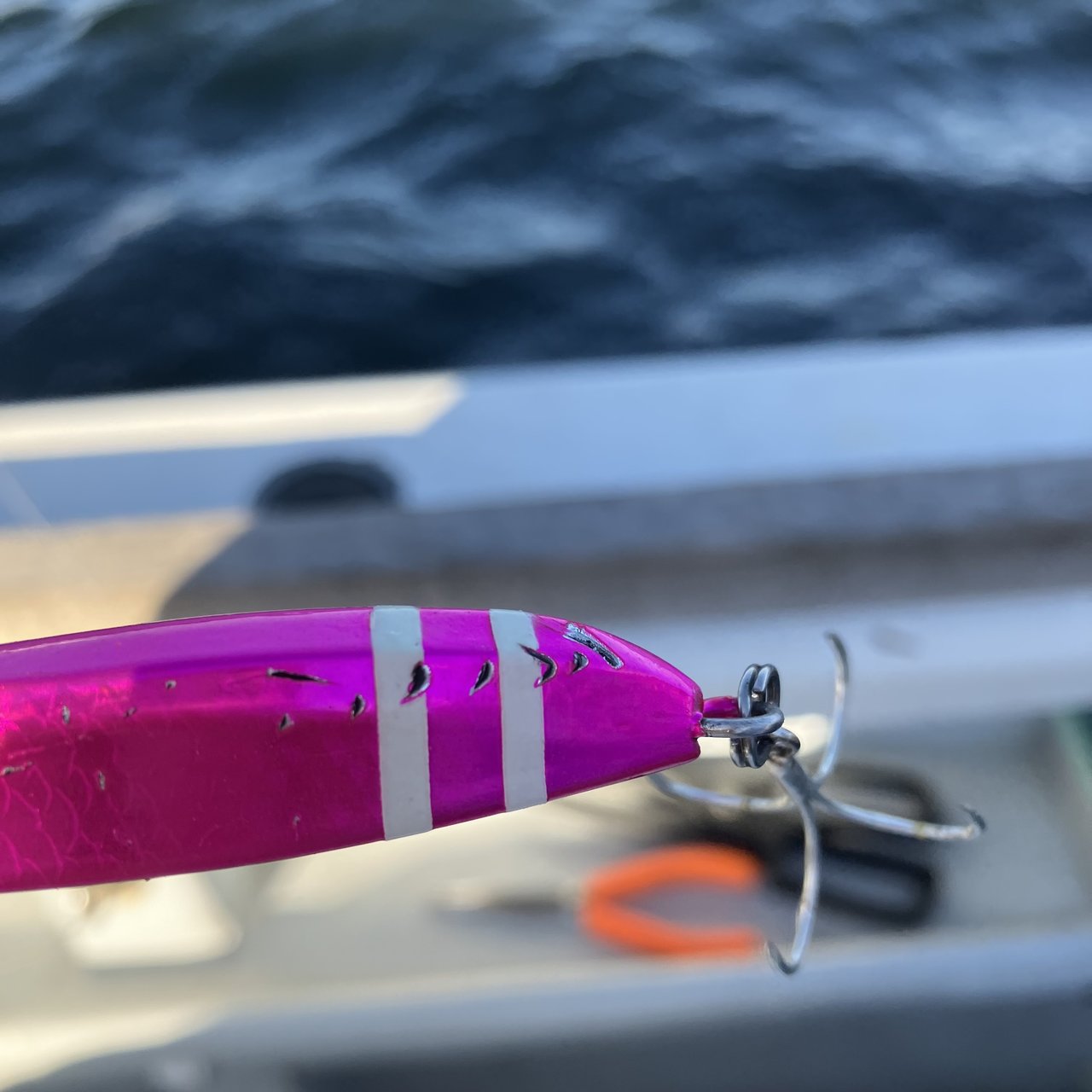 メタルジグもシマノさんのTGガトリング吉野屋カラーを使用。ストンと落ちるような形状でタチウオにリアクションで誘うようなジグとなってます。誘いはやや早巻きが効きます。ズドンと止められる感覚は最高です♪