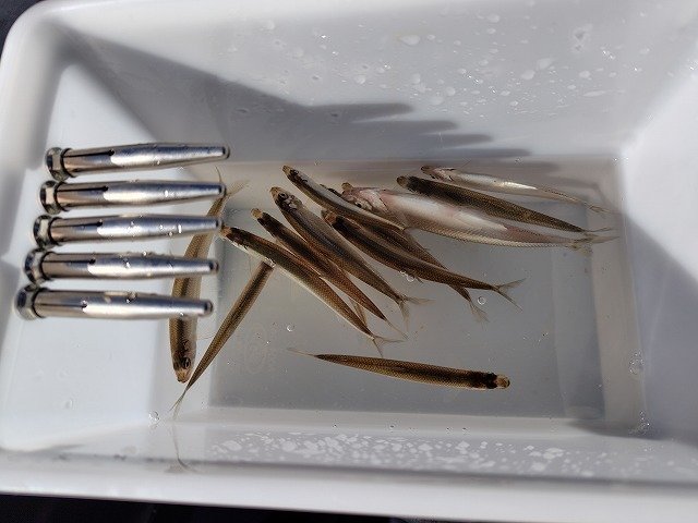 15匹くらい釣れましたし、最大で12cmのデカサギも混じりました。