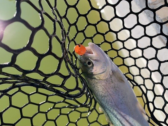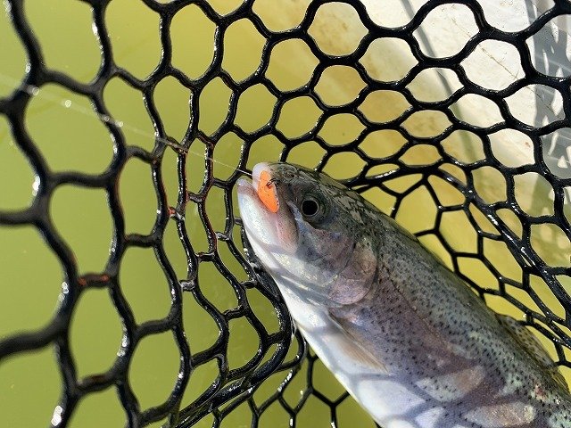 で良型頂鱒を捕獲!