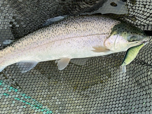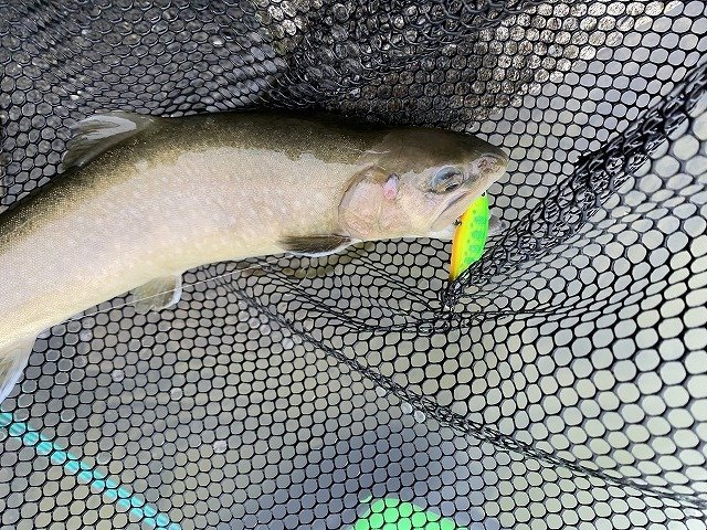 8時ごろにD-SAN合流。お話ししながらのんびり釣行でございました。桟橋では60cmはありそうな頂鱒が上がっており、人の多さに納得。イロモノが見たく、ミノーをジャカジャカしてると中サクラ&中イワナがいっぱい遊んでくれました!4時頃に雨が本降りになったので解散。