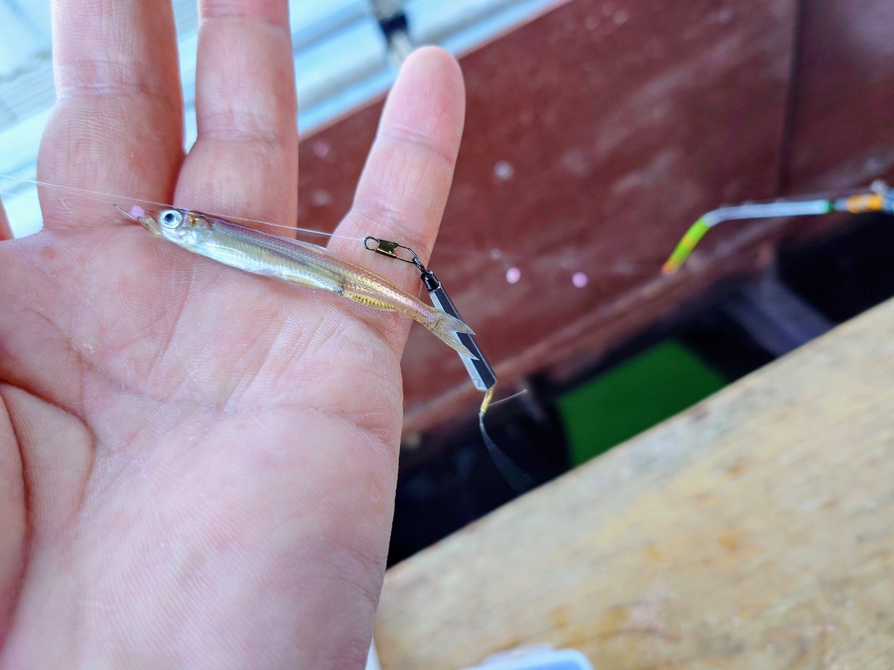 今年のワカサギサイズは小さく6㎝がアベレージっぽいので、1号のハリを0.5号に落としてみましたが、違いは感じられず…何が違うのか…