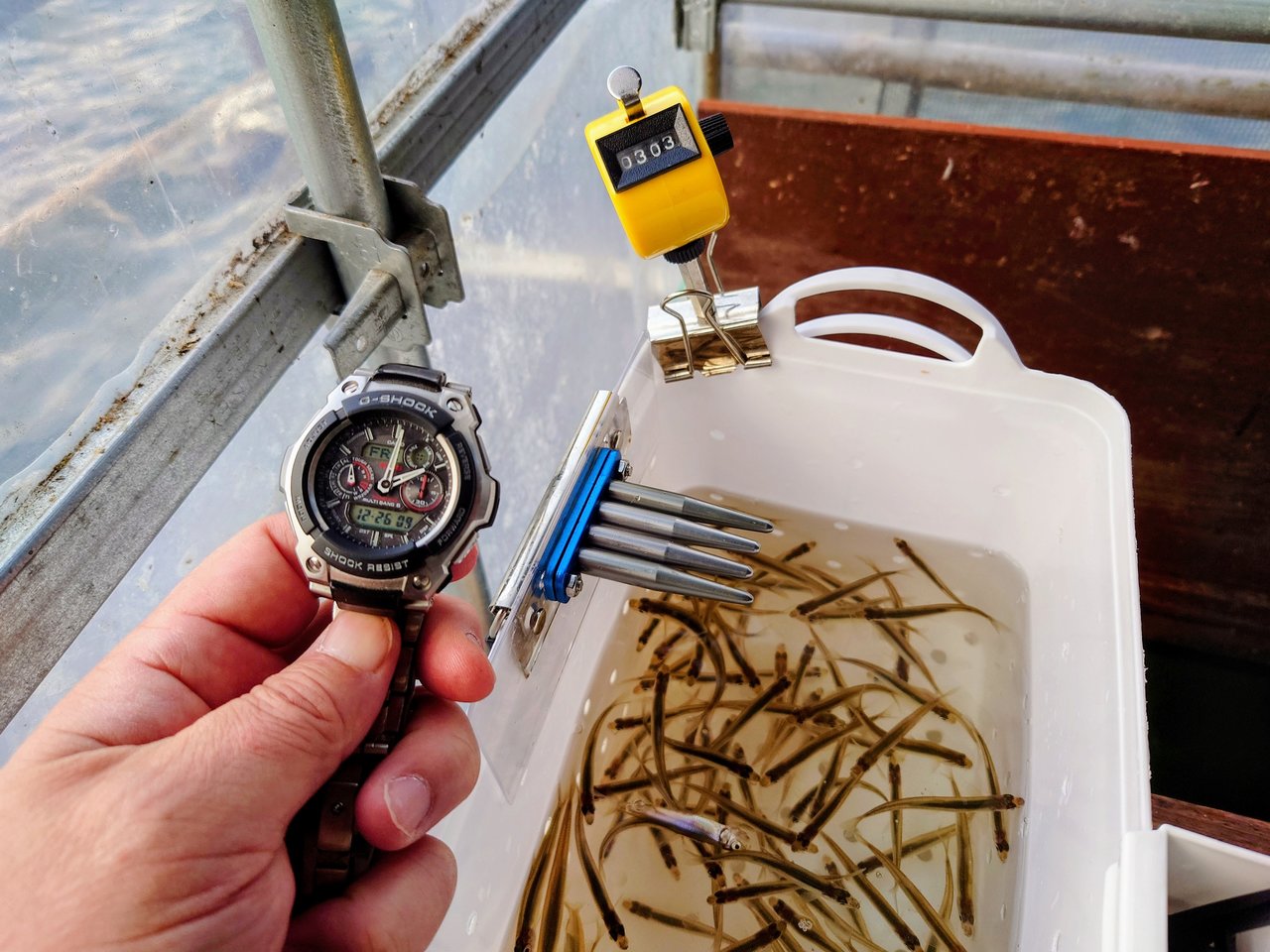 2時の自主終了時にお隣の2本竿の方のカウンターを覗くと480匹オーバー!