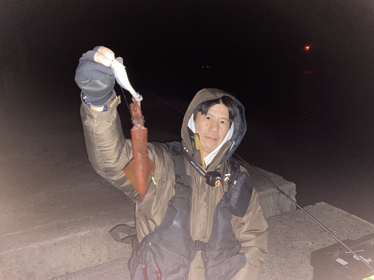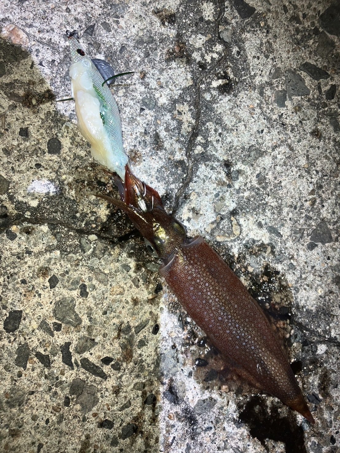 まさかの1投目に良型のスルメイカを釣ってしまいました。
