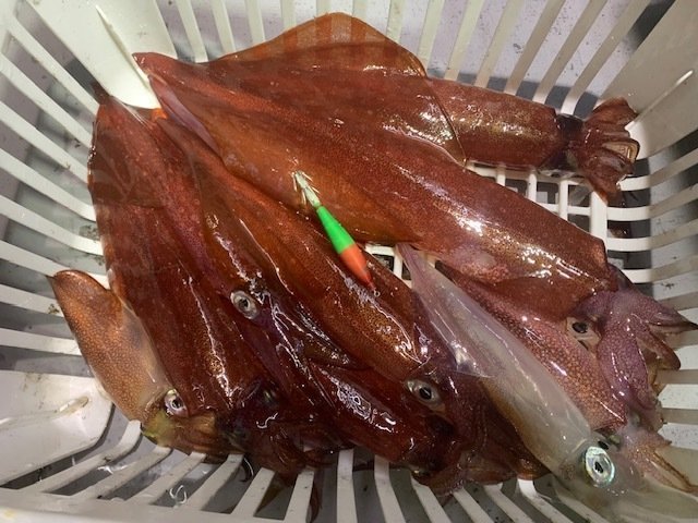 今回も暗くなってからが勝負かと思いましたが1投目からアカイカが掛かり開始1時間位で5杯釣れ