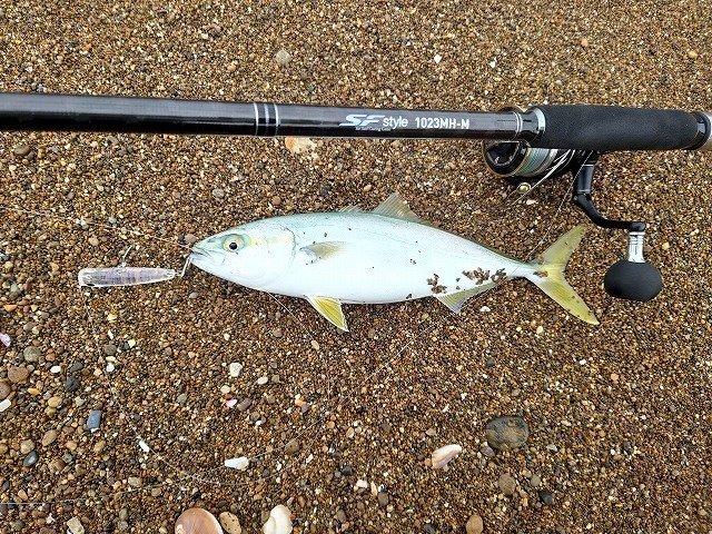 ■タックル:ロッド:SFスタイル1023MH-M ヒットルアー:ぶっ飛び君95S、Zサーディン30g、TGベイト45g、クリスタルポッパー70S、ジギングサビキ、VJ-16,VJ-22