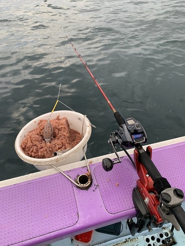 ■ロッド:82調子 180ロッド ■リール:シマノ フォースマスター601 ■ライン:PE・1.5号 ■仕掛:上州屋ライトアジビシ仕掛け・他自作品 ビシ40号 ■エサ:基本は空針 オキアミ・ソーセージ赤短