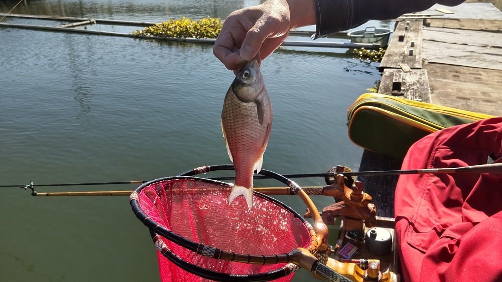 隣の釣り人は段底の釣りで釣果を出しているようなので深くしてみるも、水草が引っ掛かり釣りにならず元のタナ(深さ)に戻します。