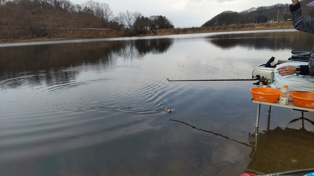 スタッフたけお。です。世を忍ぶ自宅より程よく近い『沼の辺沼』へ毎年恒例放流お手伝い&釣り(コチラはメインではない!多分)