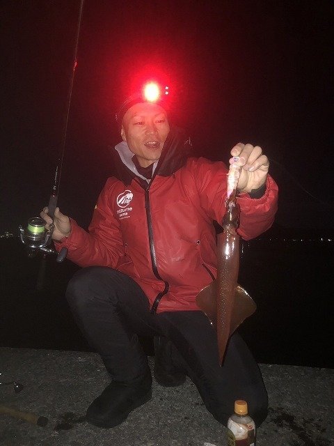 この日は、ポツポツと当たってくれて2時間ほどでヤリイカ、ケンサキ、ジンドウと